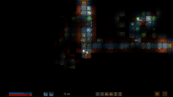 The game is a 2D shooter with mining elements and exploration.